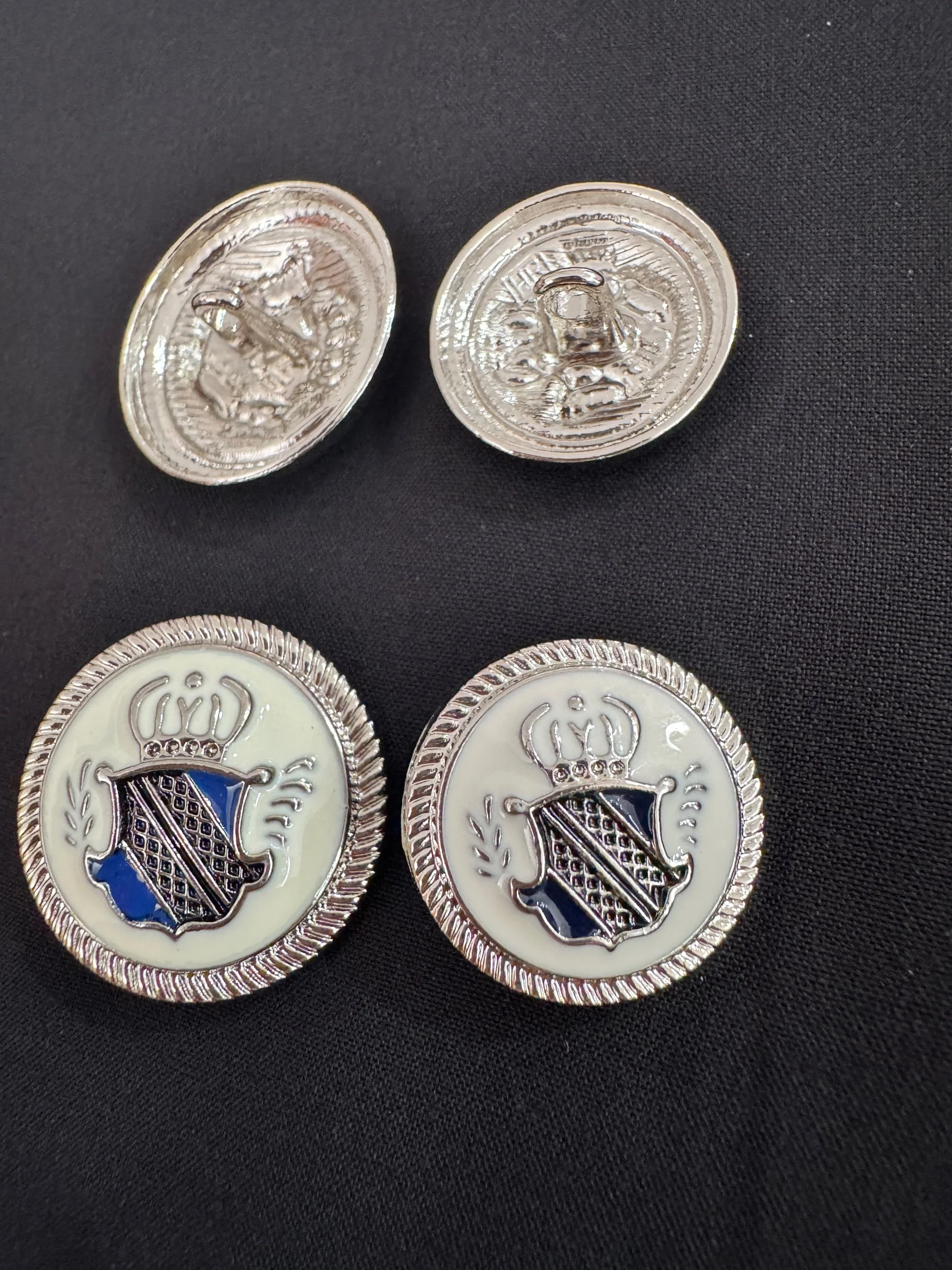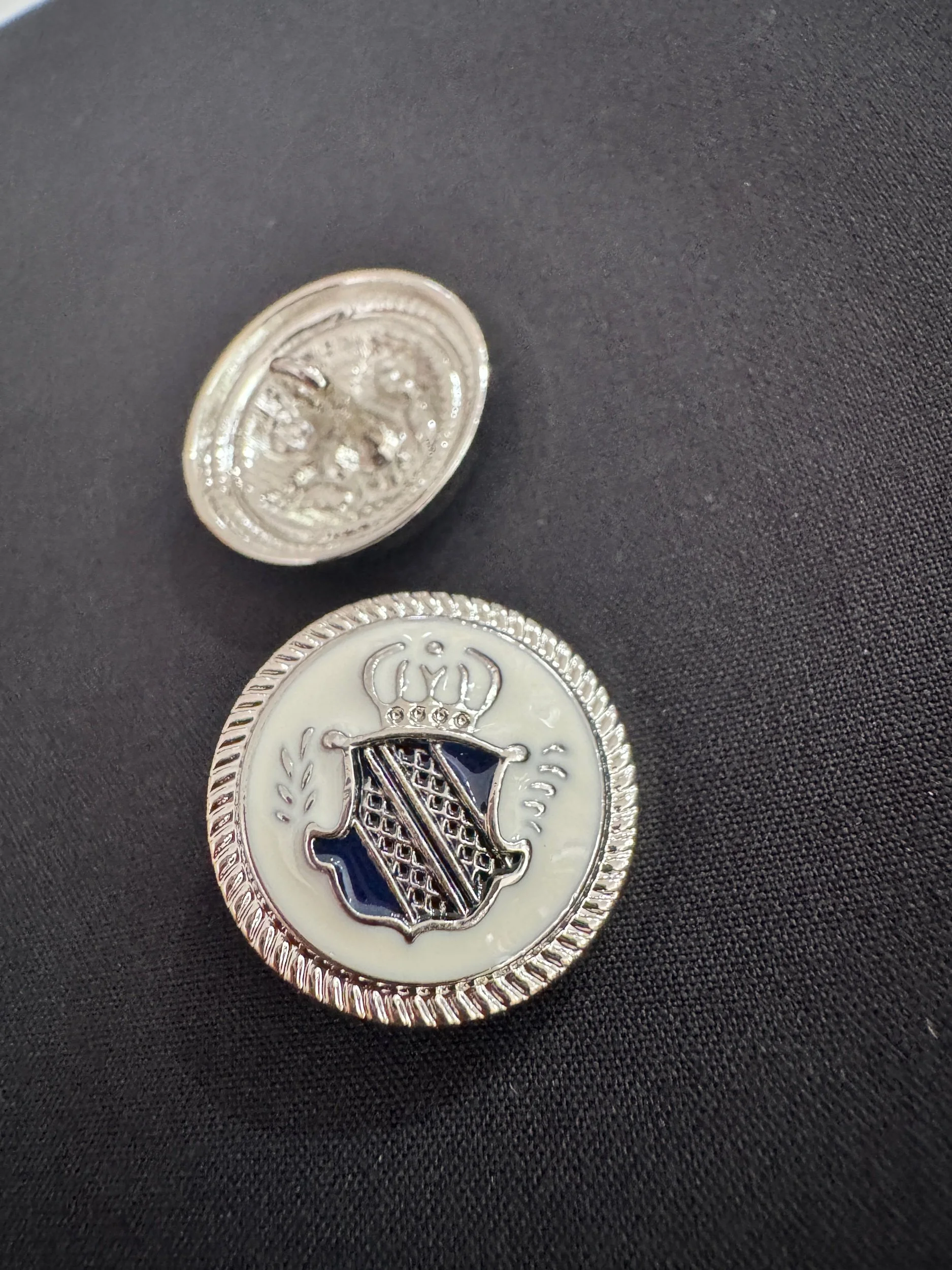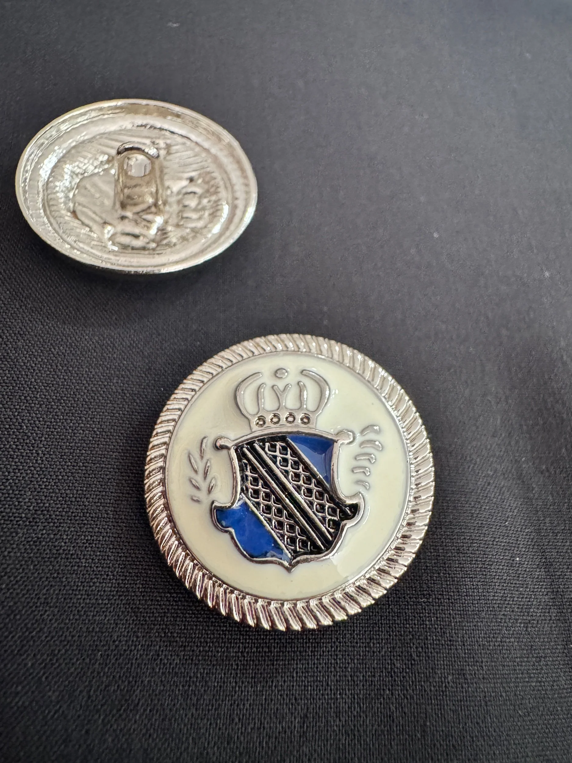 Shop › Metal button shank, coat of arms, 25mm and 20mm Image 1 of 3 Image 2 of 3 Image 3 of 3 Metal button shank, coat of arms, 25mm and 20mm from €3.20 25mm20mm Size: Select Size 20mm 25mm Add To Cart Added! 25mm20mm
