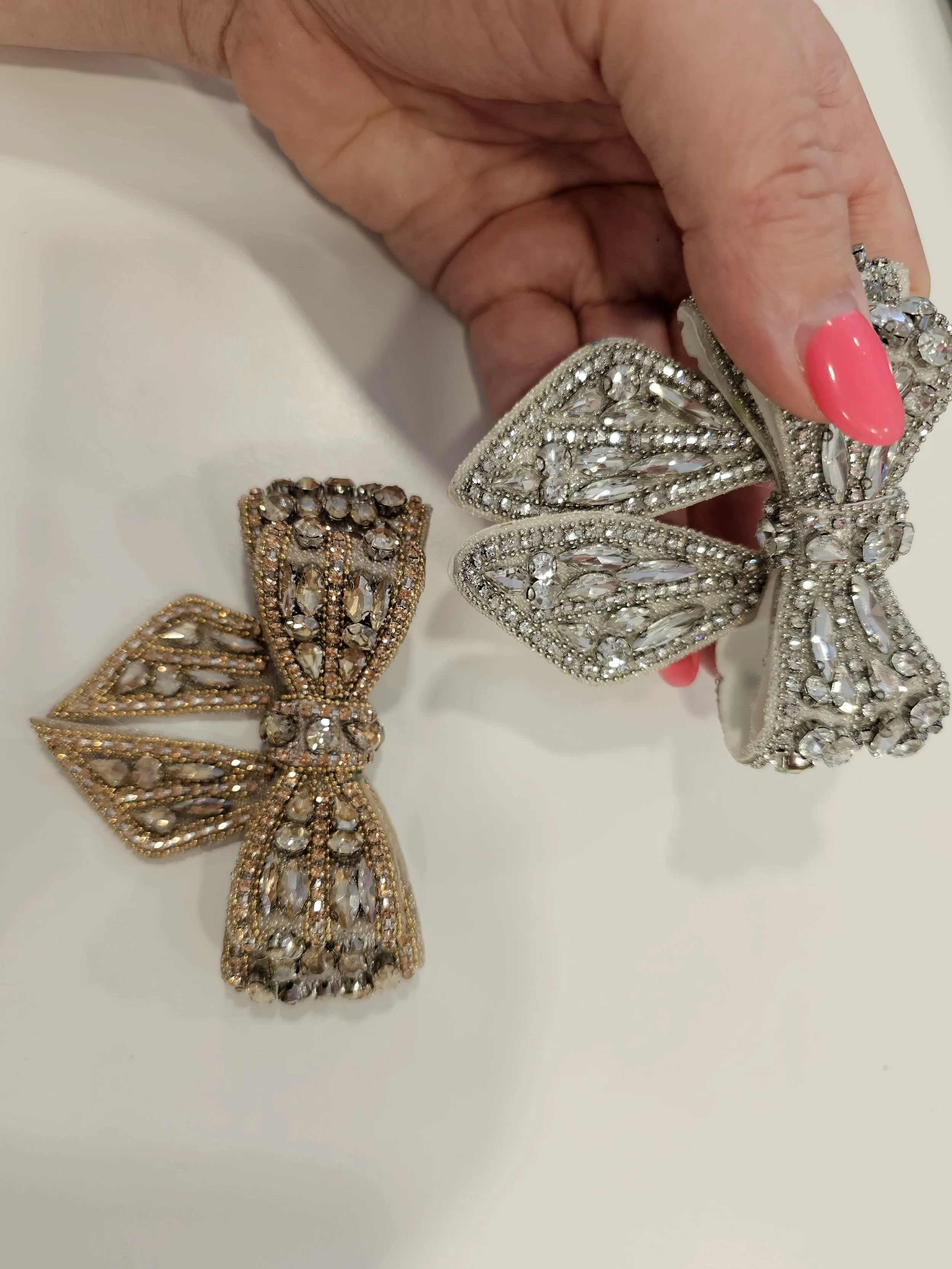 Shop › Golden & Silver bows with chick look suitable for wedding shoes Image 1 of 6 Image 2 of 6 Image 3 of 6 Image 4 of 6 Image 5 of 6 Image 6 of 6 Golden & Silver bows with chick look suitable for wedding shoes €10.00 Color: silver golden Quantity: Add To Cart Added!