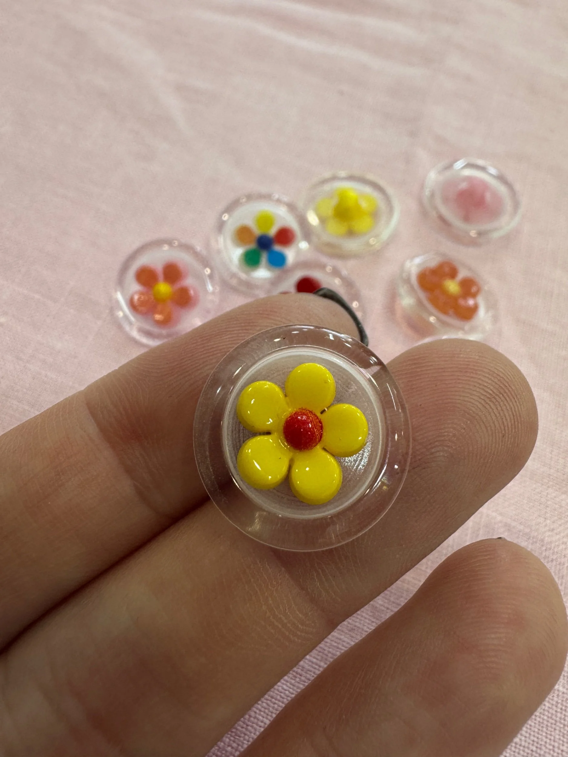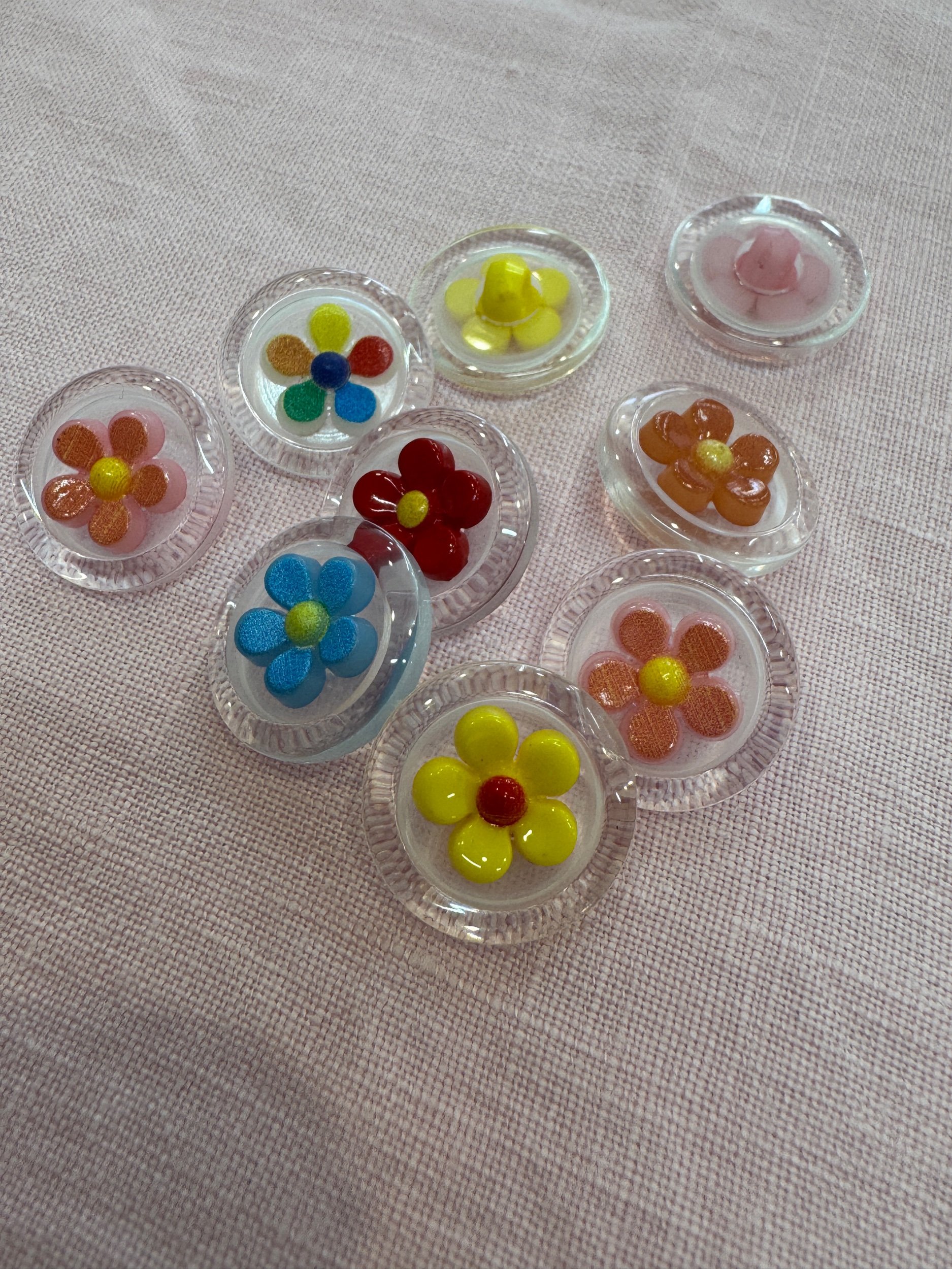 Shop › Transparent round plastic button colorful flower design Image 1 of 2 Image 2 of 2 Transparent round plastic button colorful flower design €0.60 18 mm diameter Quantity: Add To Cart Added! 18 mm diameter